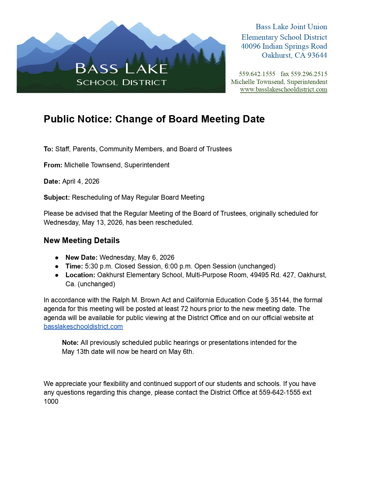 2026-2027 Budget UpdateOver the past four months, the Bass Lake Joint Union Elementary School District (BLSD) has worked to navigate a projected fiscal shortfall of $800,000 – $850,000. After exhau...